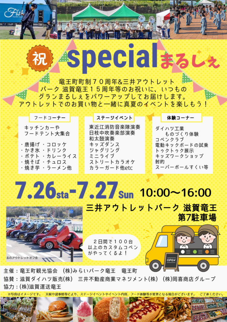 このたびD-SPORTは、2025年7月27日(日)に三井アウトレットパーク滋賀竜王 第7駐車場にて開催される「竜王スペシャルまるしぇ」にブース出展いたします。